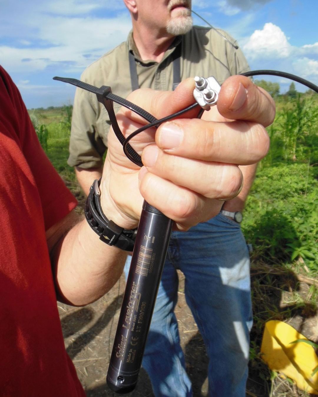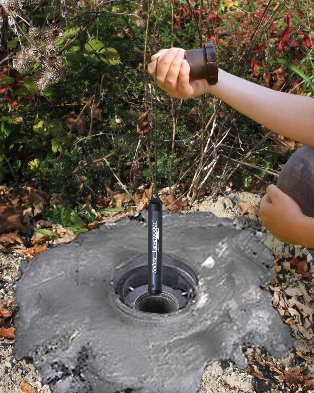 - Installazione permanente con lettura periodica - lo strumento viene installato in maniera permanente e collegato alla testa-pozzo mediante un cavo ottico, periodicamente si accede al pozzo e senza estrarre il Levelogger, ci si collega direttamente alla testa-pozzo per lo scarico dei dati, che a sua volta può essere effettuato con diverse modalità: