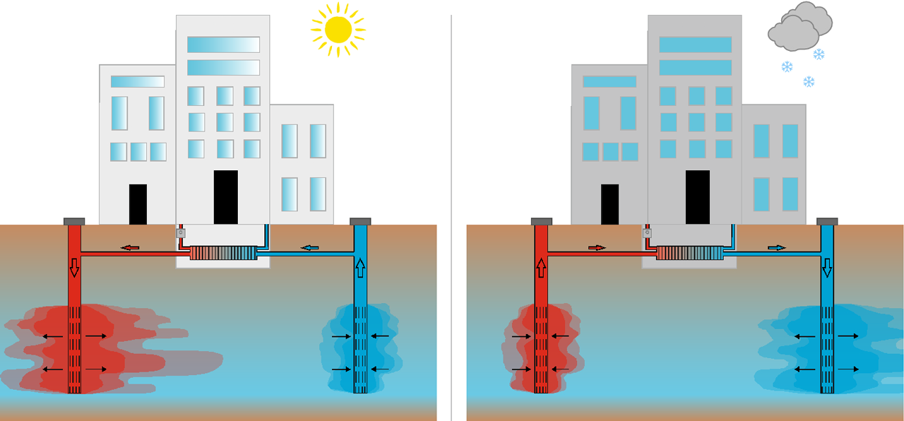 Con l’utilizzo di sensori all’interno dei pozzi dei pozzi di prelievo e di re-immissione, viene effettuato un monitoraggio della temperatura, localizzato e limitato ai due punti in esame, questo solitamente è sufficiente per soddisfare alle esigenze degli enti di controllo.