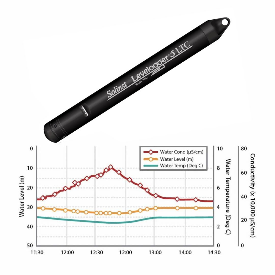 Il modello 3001 LTC Levelogger 5 di Solinst, oltre a Livello e Temperatura, ha anche un sensore per la Conducibilità Elettrica costituito da 4 elettrodi in platino. Disponibile come il modello LT Levelogger 5, in 6 versioni di fondo scala: 5, 10, 20, 30, 100, 200 m. Ha una precisione dello ± 0.05% del FS per il livello e di ± 0.05°C per la temperatura, mentre la conducibilità ha una precisione dello ±1% tra 5.000 e 80.000 μS/cm mentre tra 80 e 5,000 μS/cm, il più grande tra il ±2% o 15 μS/cm. La memoria ha una capacità di 27.000 letture e la batteria una durata di 8 anni (con una lettura ogni 5 minuti).